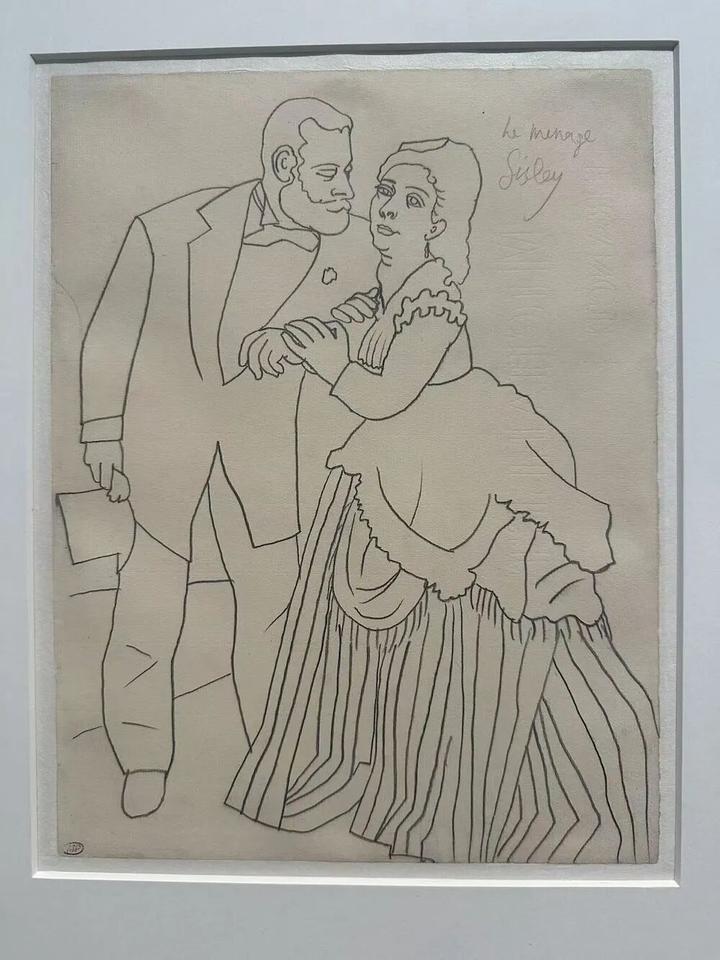 展览现场,毕加索1919年铅笔作品《致敬奥古斯特·雷诺阿》