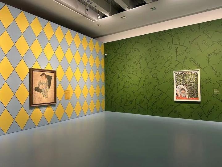在暗黑氛围中的“战争期间”展厅,虽然仅有四件作品,但依旧能感受到某种压抑的氛围,画中的人物脸部常带威胁感或被扭曲,女性被置于看似狭小的空间中,营造出紧闭、束缚的感受。