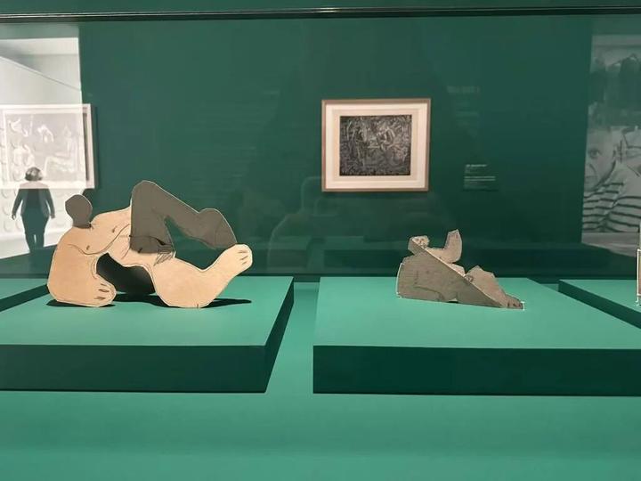而一整个对马奈《草地上的午餐》研究的展厅,更让人感受到这位现代艺术家对于前辈画家的作品,不断地研究和解构。在此,绘画、版画以及纸质小雕塑展示了毕加索在直面马奈这一经典杰作时所经历的创作“沸腾”状态——他同时在多种媒介中工作,试图吸收、占有并彻底探索这一构图的所有可能性。