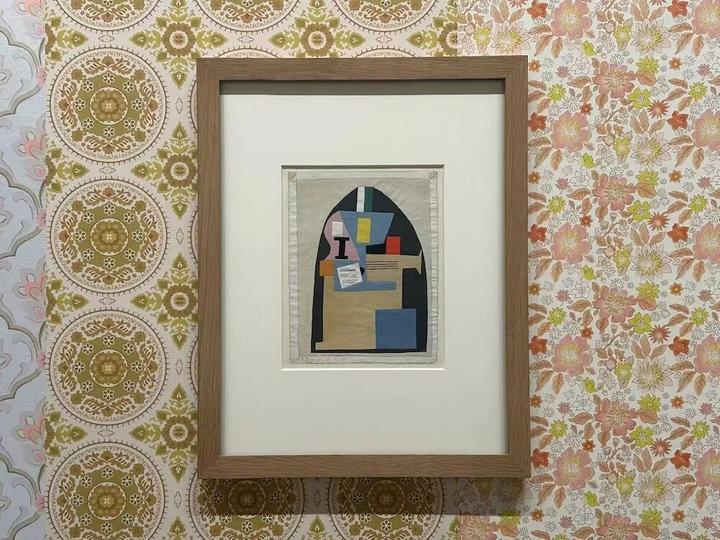 此外,在“拼贴与组合”的展厅,有一件由木头、纸板制作的小型作品《玻璃杯与报纸》,是毕加索非常私人的、实验性的尝试。介于二维与三维之间,形成了一种介乎绘画与雕塑之间的混合形态。