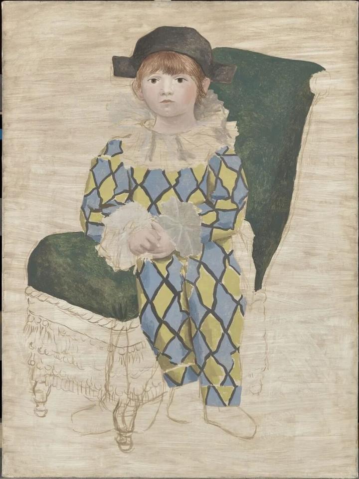 毕加索《装扮成丑角的保罗》,1924,布面油画