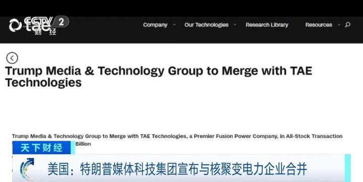 在人工智能算力需求呈现爆发式增长的背景之下,不少公司开始押注AI能源赛道。当地时间18日,美国总统特朗普旗下的特朗普媒体科技集团和美国核聚变电力企业TAE技术公司联合发布公告,宣布两家企业已经签订约束性合并协议,交易估值超过60亿美元,约合人民币420亿元以上。消息传出之后,特朗普媒体科技集团股价当天上涨超过40%。