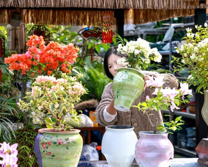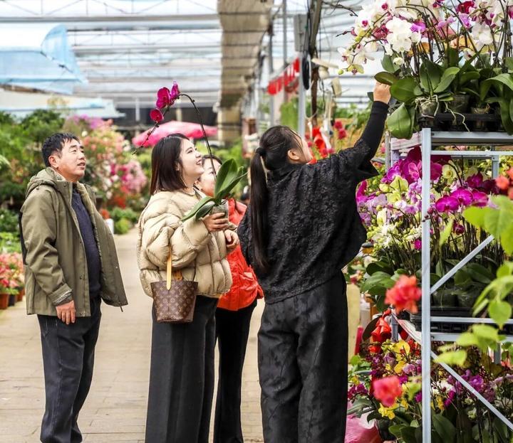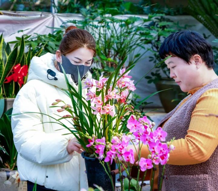 今年的年宵花卉相较往年,品种更加齐全,除了蝴蝶兰、大花蕙兰、红掌等传统花卉,仙客来、水仙、蟹爪兰等小型盆栽也深受市民的喜爱。小编了解到,今年年宵花价格相较去年有所回落,一盆单株蝴蝶兰售价约20元,组合成造型精致的大盆蝴蝶兰200元左右,好打理且花期能维持两三个月,高性价比让市民的购买热情更高了。