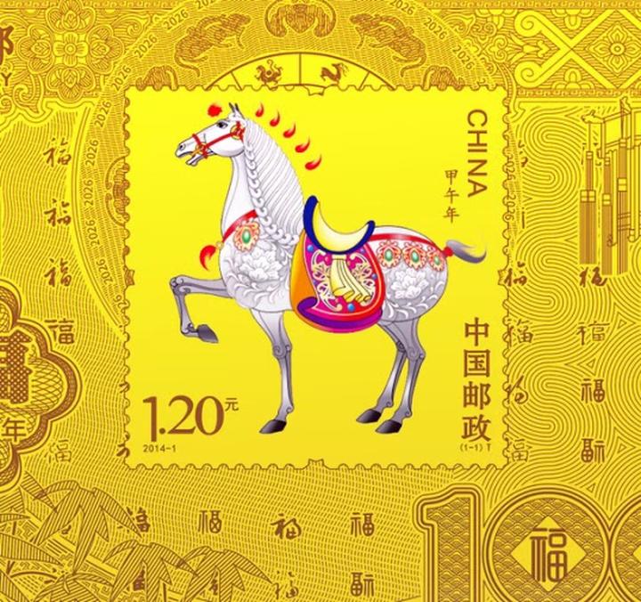 3、融合2014甲午马年邮票×百福文化×非遗剪纸元素,喜迎2026丙午马年。