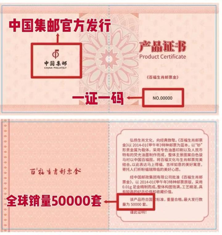 1、中国集邮官方限量发行,荧光防伪,一证一码。