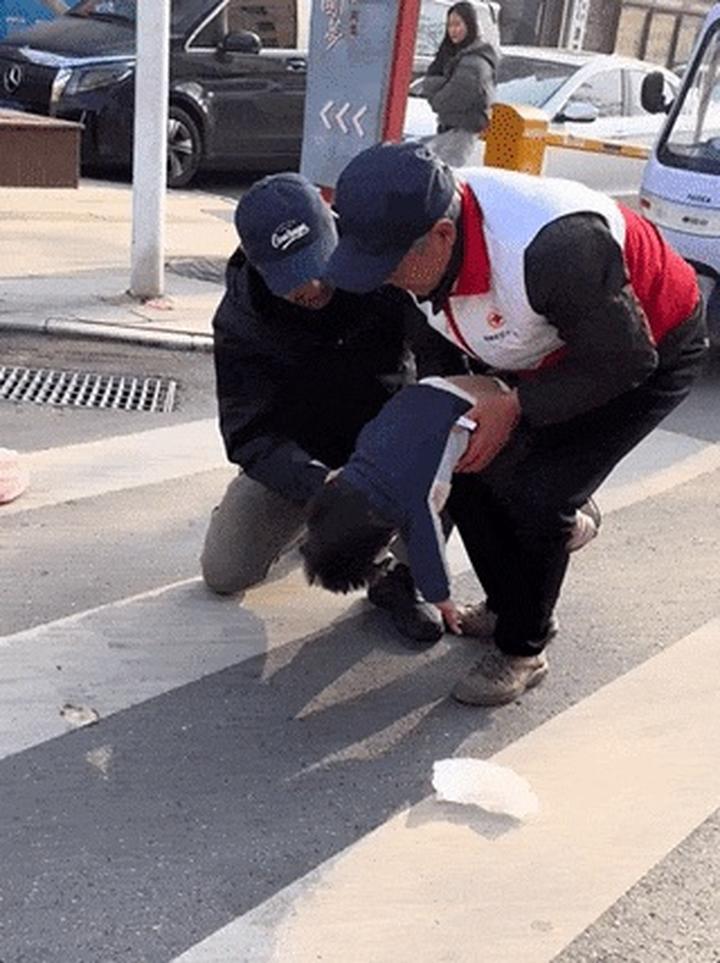 两名恰巧路过的红十字志愿者