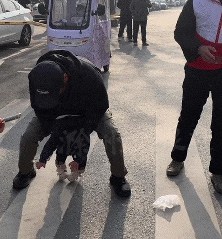 只见一位老人抱着幼童瘫坐在地