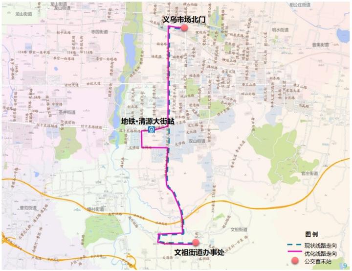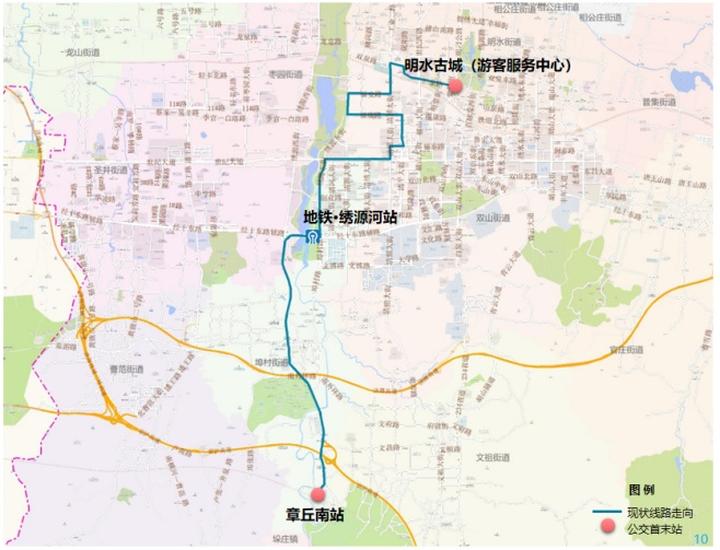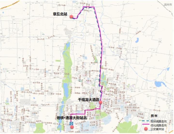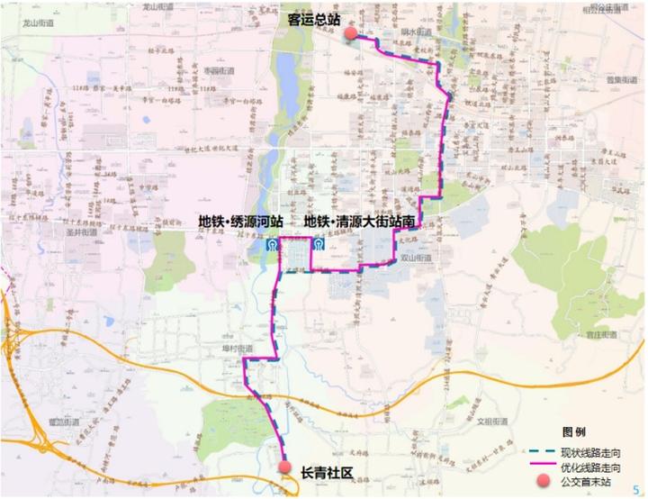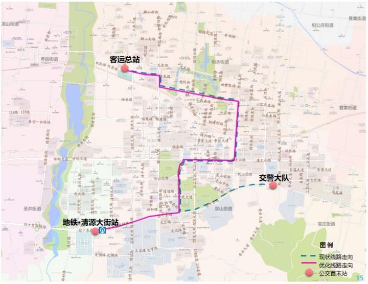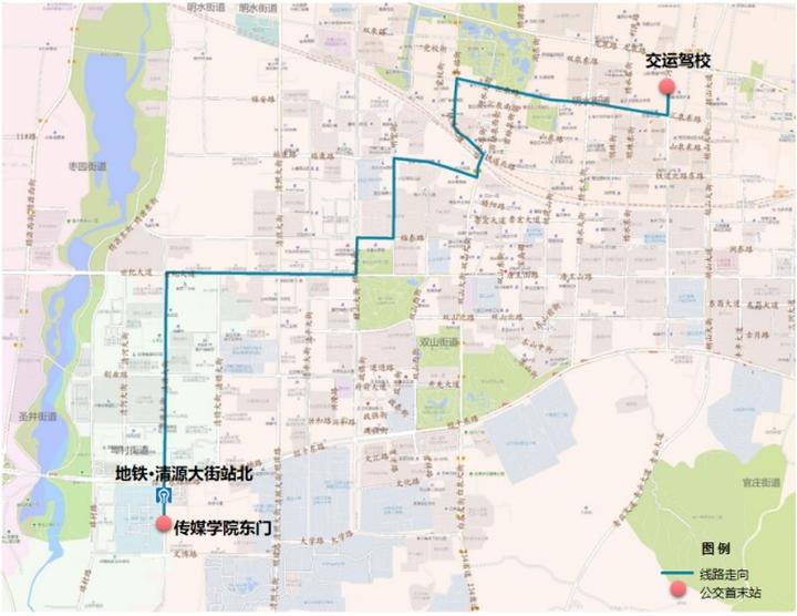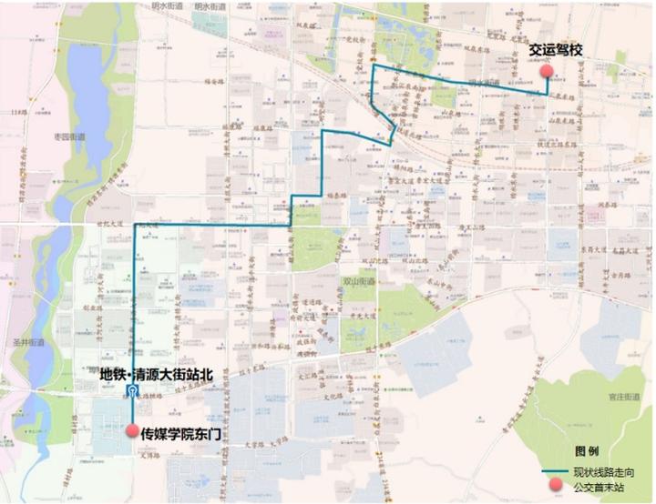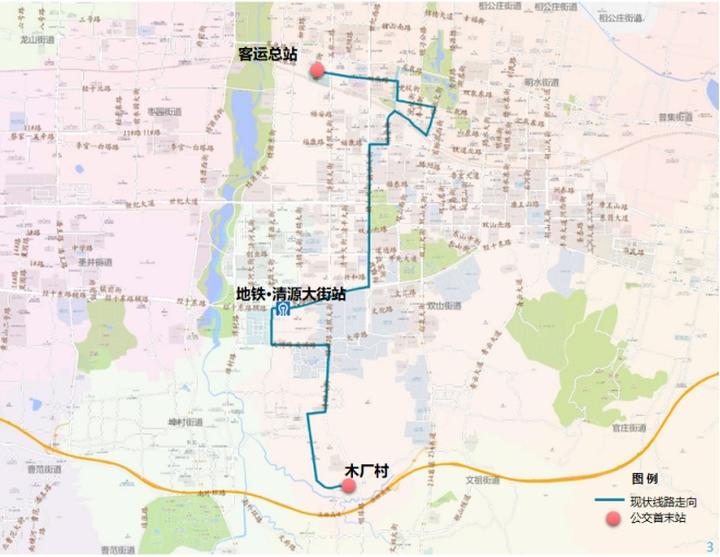 调整线路:整体线路走向不变。地铁接驳设施建设完成后,进驻地铁·清源大街站停靠运行。其他线路站点不作调整。