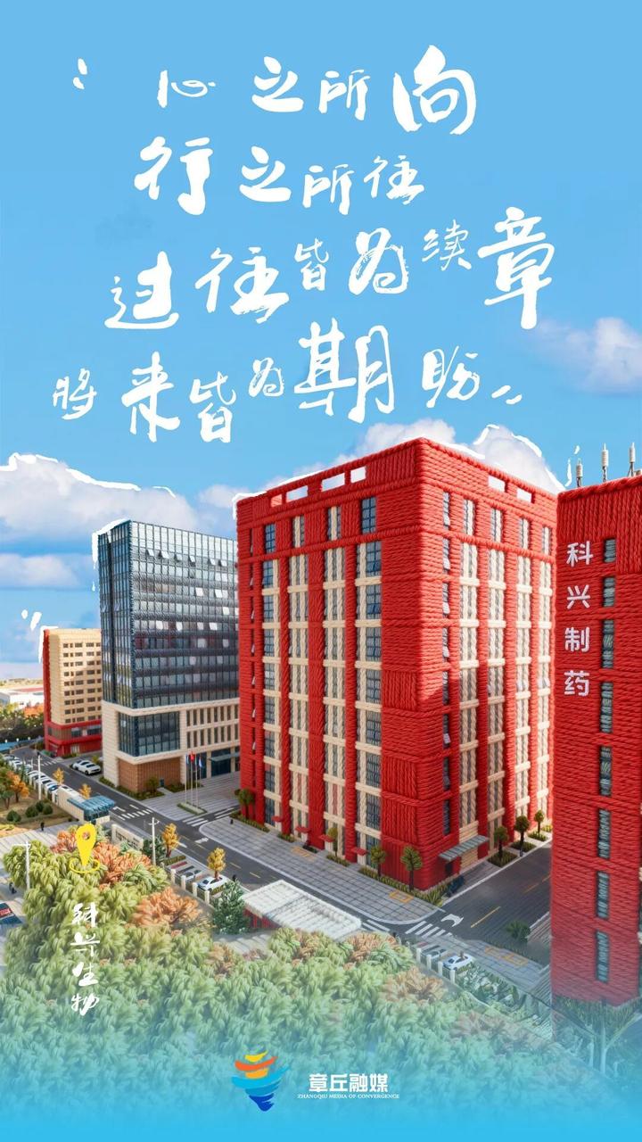 科兴制药的红色楼宇在蓝天下屹立,现代玻璃幕墙与之辉映,铭刻着笃行不怠的信念,寓意着章丘在生物医药等前沿赛道,满怀期盼,奋力书写崭新续章。
