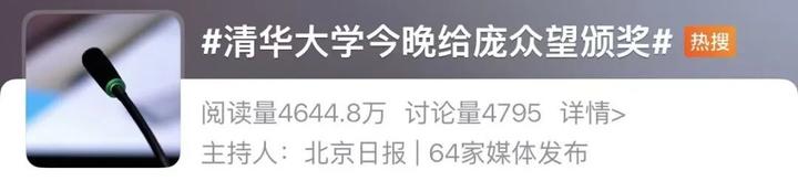 同日,“清华大学给庞众望颁奖”相关话题冲上热搜——