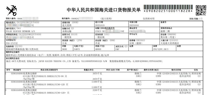 今天山海风物市集给大家推荐的北极甜虾,是来自丹麦格陵兰岛深海的2025年捕捞季新货,依据进口凭证,于10月底入境。