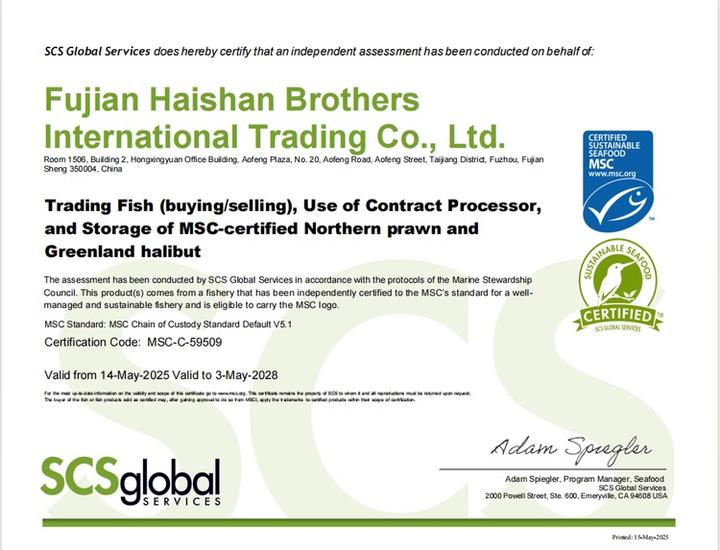 MSC认证表示:该产品源自符合国际海洋理事会环境标准的海域,并且符合良好管理和可持续捕捞的要求。