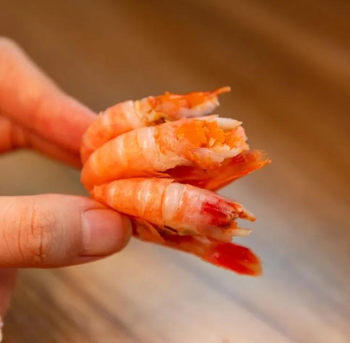 甜虾在捕捞后需要马上煮制并急冻锁鲜,所以,当北极甜虾送达时便已经是熟虾了。