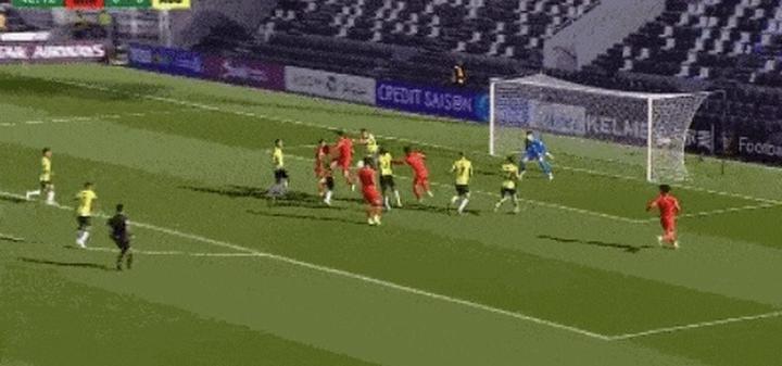 澳大利亚队在上半场略占优势,控球率虽然达到62%,但实质性的进攻威胁并不大,5脚射门无一脚命中目标。中国队依靠反击和定位球与对手周旋,半场结束前,彭啸利用任意球机会抢第二落点劲射破门,这也是中国队在上半场的唯一一脚射门。
