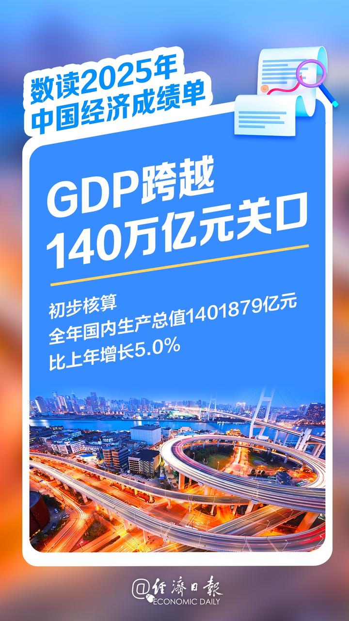 +订阅国家统计局今天发布数据显示,2025年,我国国民经济运行顶压前行、向新向优,高质量发展取得新成效,经济社会发展主要目标任务圆满实现,“十四五”胜利收官!一起来看↓