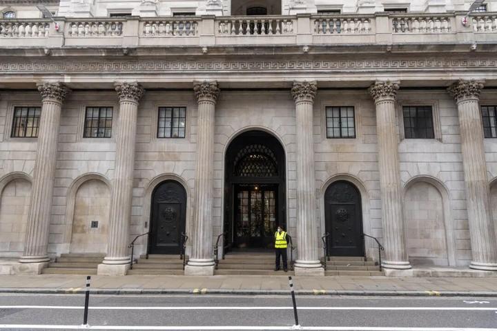 一名安保人员站在英国伦敦的英格兰银行外。雷伊·唐摄(新华社)