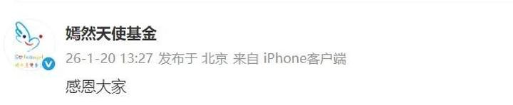 1月20日,嫣然天使基金发文回应近期网友捐款: