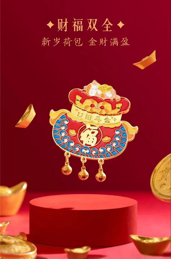 新岁荷包,金财满盈,冰箱贴上的荷包是开合设计,底部悬挂铃铛。铃铛一响,黄金万两,祝大家日进斗金!