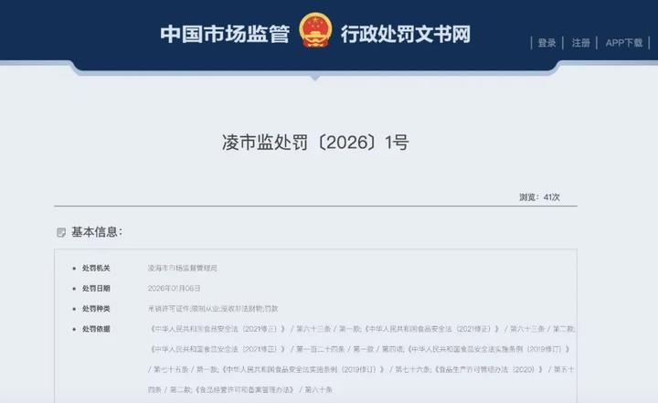 也是在近日,国家企业信用信息公示系统显示,辽宁润泽农业有限公司因未按责任制要求落实食品安全责任的行为,被兴城市市场监督管理局罚款5万元并责令停产停业,法定代表人杨某被罚款100万元。