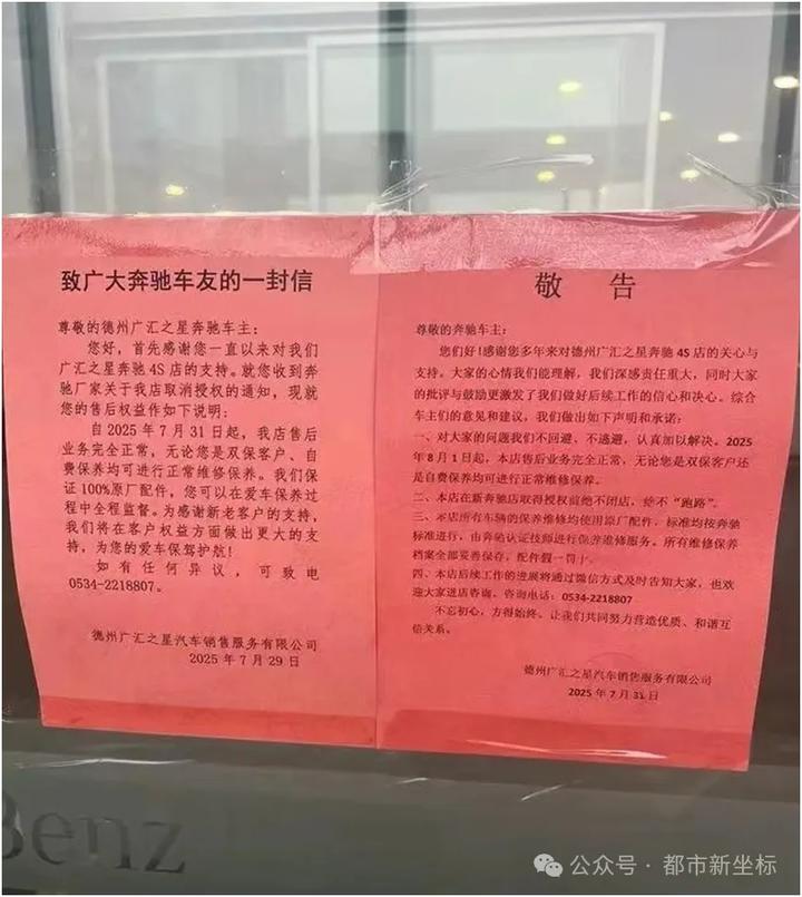 其实,梅赛德斯—奔驰的此类事件并非只出现在山东。据相关汽车行业媒体不完全统计,2025 年上半年全国范围内就有超 80 家奔驰授权经销商终止运营,覆盖 23 个城市,其中以宝利德、广汇两大集团为闭店重灾区。面对车主的维权诉求,奔驰官方均声称不承担连带责任。(山东商报·山海新闻记者 刘东宁)