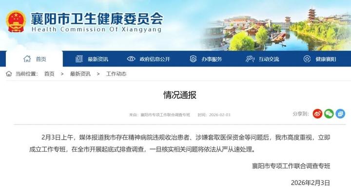 2月3日上午,媒体报道我市存在精神病院违规收治患者、涉嫌套取医保资金等问题后,我市高度重视,立即成立工作专班,在全市开展起底式排查调查,一旦核实相关问题将依法从严从速处理。