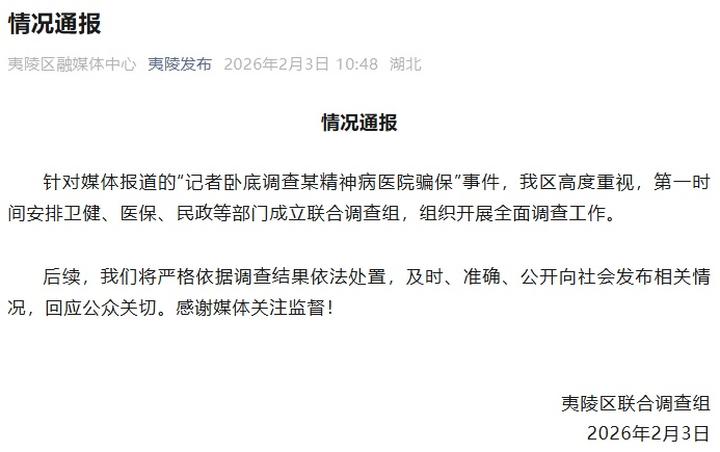 2月3日,湖北夷陵区联合调查组发布情况通报: