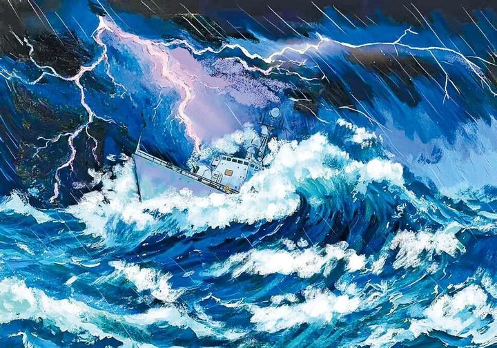 军舰渐入台风外围圈。驱逐舰排水量才数千吨,能不能扛得住这超强台风,胡海虎心里还是打了个问号。