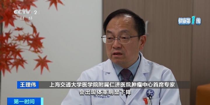 上海交通大学医学院附属仁济医院肿瘤中心首席专家 王理伟:最初的表现,50%的人会出现体重明显下降,下降超过10%。胰腺癌病人90%是营养吸收不好,体重不明原因下降,要去做针对胰腺肿瘤的筛查。