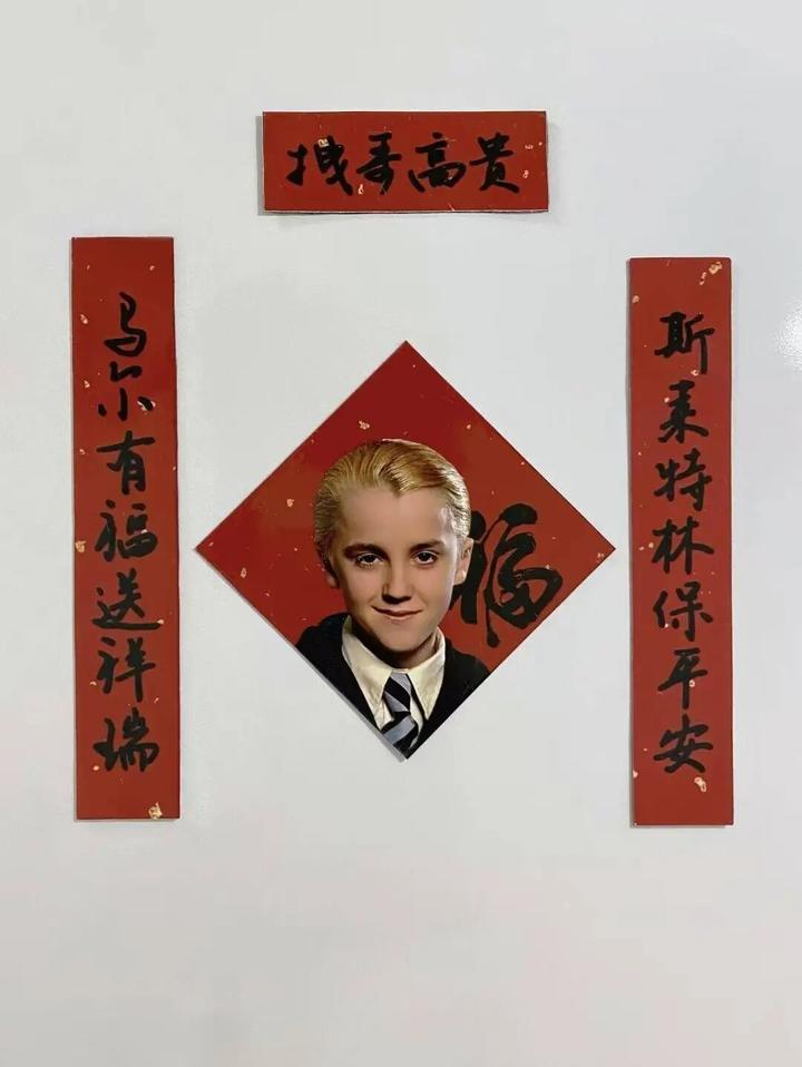 2月3日,饰演马尔福一角的英国演员汤姆·费尔顿在个人社交账号上转发了当地媒体对马尔福福字走红中国社交平台的报道。图片中是中国商场内悬挂的一幅巨大马尔福春节海报,下方字幕写着“德拉科·马尔福突然成了中国新年的象征”。