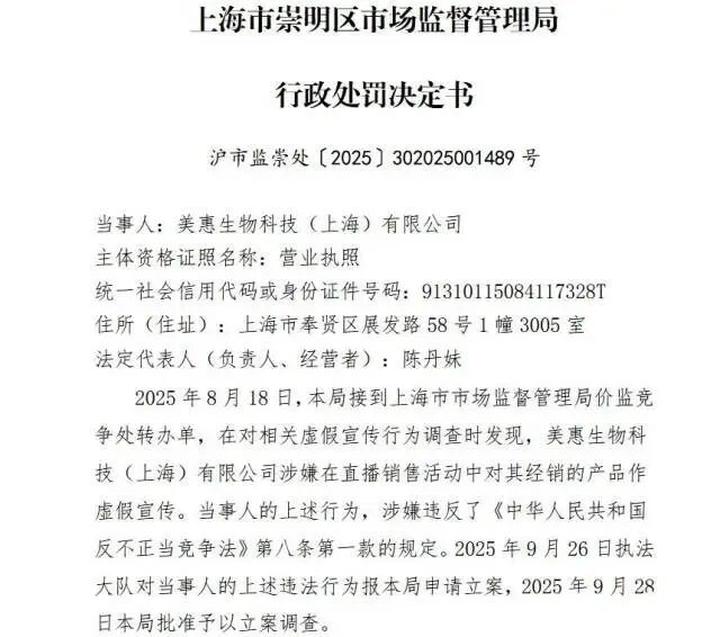 上海市崇明区市场监督管理局指出,经查证,“太空30号”产品为普通食品,不具有治疗功效,以上内容为虚假。2025年9月25日,该公司提交了整改报告并改正了违法行为。2025 年9月28日,该公司被立案调查,同年12月3日,该公司被罚款3万元。