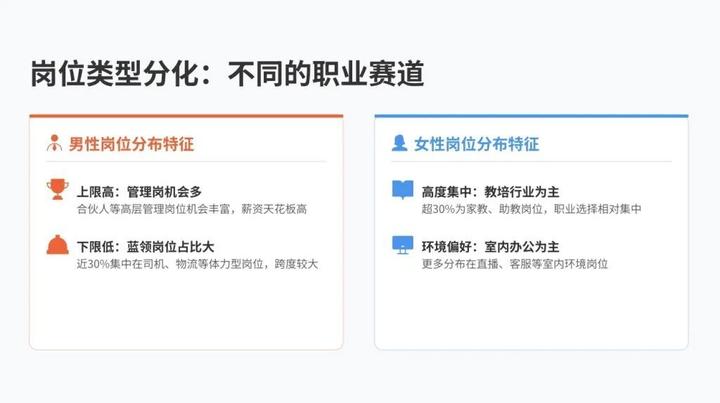 岗位类型差异较大,男女测试对象的职业赛道分化显著