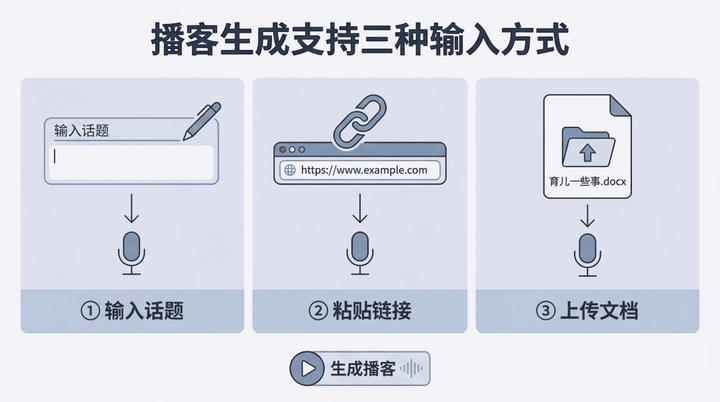 从阅读到聆听,只需一次点击。派生万物AI播客功能正式上线,支持将话题、链接、文档一键生成双人对话音频。