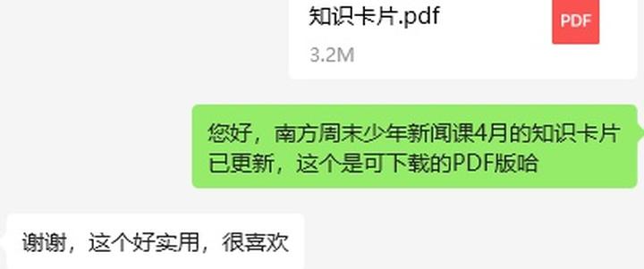 加了课程助教的家长朋友,每周日会在朋友圈看到一条更新提醒,每个月还会收到一份少年新闻课高清知识卡片Pdf。
