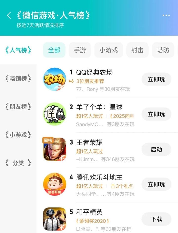 ▲QQ经典农场上线后,短时间内登顶微信游戏人气榜