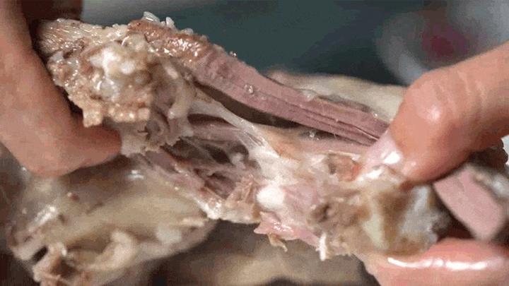 这个部位可是火锅的“主角”,它是带里脊肉和脊髓的完整羊脊椎骨,吃起来很鲜。