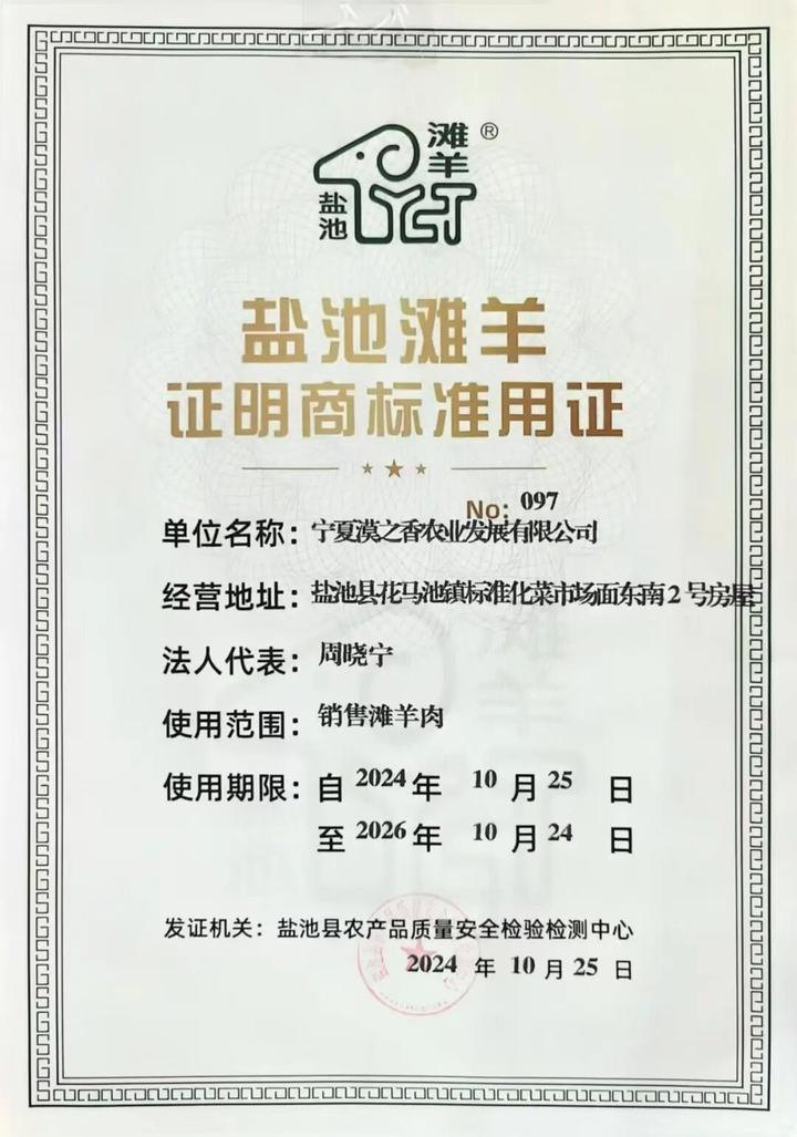 销售正宗的盐池滩羊需持有官方认可的“盐池滩羊证明商标准用证”。今天的产品资质齐全,来源正宗。