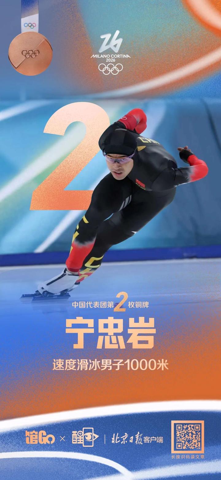 当地时间2月11日,米兰冬奥会进行了开幕式后第五个比赛日的争夺。在米兰速滑馆进行的米兰冬奥会速度滑冰男子1000米比赛中,中国名将宁忠岩以1分07秒34的成绩夺得铜牌。这是中国体育代表团在本届冬奥会上收获的第三枚奖牌,也是中国选手在该项目上首次站上奥运领奖台。
