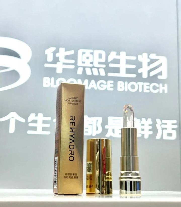 润熙泉这款变色唇膏采用了华熙专研的微球玻尿酸科技。