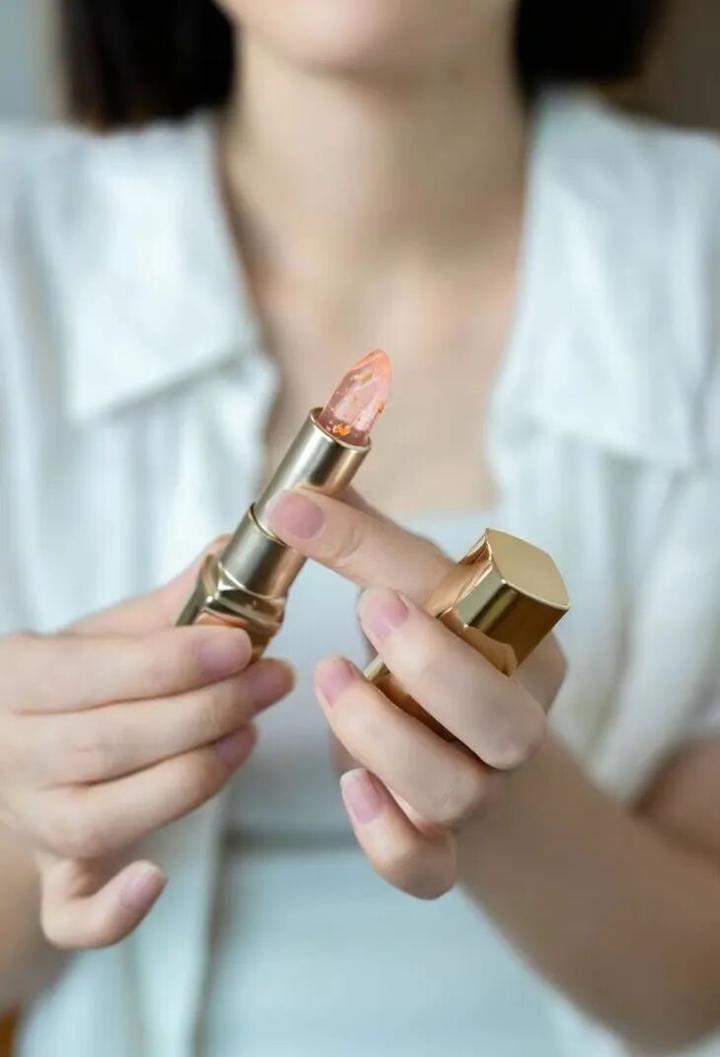 白天,你可以随身携带润熙泉变色唇膏,在上唇部彩妆前用它打底,不仅能让涂抹口红时更加顺滑,还能打造镜面感玻璃嘟嘟唇。