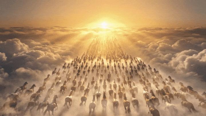在AI加持下,杨丽萍的舞蹈有了更无边界的创作实现能力,这次舞台所展现的“万马奔腾”的宏伟场景,用过去的技术手段很难呈现。千问辅助制成的画面,将舞者置身于广袤的大地上,伴随着舞姿,矫健的人体轮廓又逐渐化成奔腾的骏马。AI把艺术的想象力完整地呈现出来,这给创作者带来了全新的视野。