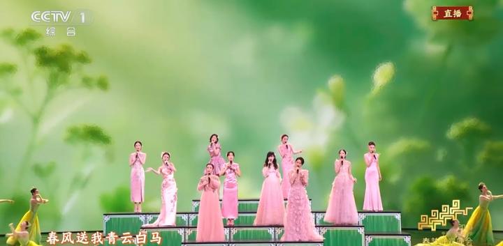 周慧敏、刘敏涛、梁咏琪、秦海璐、薛凯琪、张钧甯、姜妍、热依扎、刘惜君、希林娜依高把《立春》唱给你听。歌曲旋律轻柔灵动,屋檐雨落滴滴答、溪水一唱哗啦啦,唯美的舞台上,屋檐雨落、种子发芽的诗意春景一览无余。一曲动人旋律,让我们看到了“人间向暖草木发”的勃勃生机。