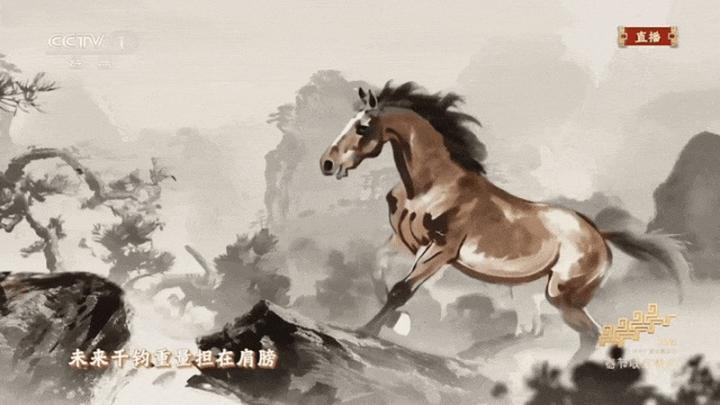在《驭风歌》里,国宝级水墨画《六骏图》第一次以动态形式呈现。画里那六匹神采飞扬的骏马,在AI技术加持下完成奔跑、腾跃等高难度动作,还配合镜头做出流畅运镜,把原本只能想象的画面真正搬上了舞台。