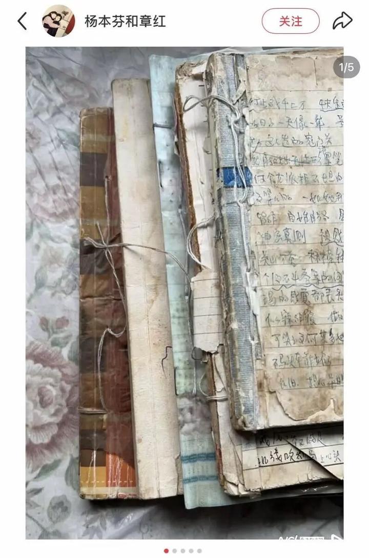 杨本芬在回应文章中附上了几本年代已久,已翻到破烂的摘抄本的照片。她坦言,自己六十岁才开始有写作的念头,阅读是她学习写作的唯一途径。和许多初学者一样,她养成了在阅读时摘抄“好词好句”的习惯。“那些摘抄本都被我翻烂了,一些词句和段落就印在脑子里,写作时遇到相似的心境或场景,有时它们便会跳出来。有时候觉得别人的表达更妥帖,便也用到自己笔下。”