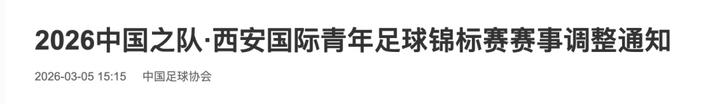 2026中国之队·西安国际青年足球锦标赛赛事调整通知