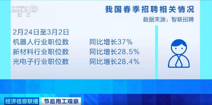 从招聘趋势看,新质生产力相关产业已成为今年春招市场驱动人才需求增长的主力,其中机器人、新材料、光电子领跑前三,平均招聘月薪也都突破了一万元。