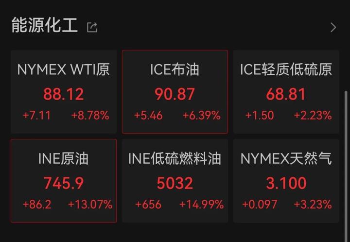国际油价持续攀升,布伦特原油期货站上90美元/桶关口,WTI原油期货站上88美元/桶。
