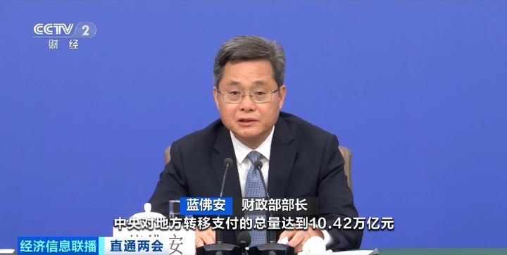 财政部部长 蓝佛安:中央对地方转移支付的总量达到10.42万亿元,连续4年超过10万亿元。其中,均衡性转移支付、县级基本财力保障机制奖补资金,两项财力性转移支付,增加1100亿元。这些资金实打实给到地方,让各地有更多财力兜牢“三保”、改善民生、发展经济。