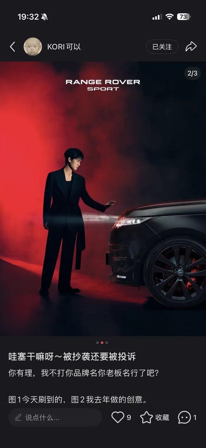海报发布后,原版海报的设计人员“KORI可以”在社交平台发布对比图,指出该海报与其此前为路虎揽胜运动版创作的一组视觉作品,在构图结构、色彩搭配、人物姿态以及光影逻辑等方面高度相似。她在公开内容中将这种相似关系描述为“1:1等比抄袭”,并通过图片直接对比的方式阐述自己的观点。相关对比图随后在汽车圈和设计圈迅速传播,引发大量讨论。