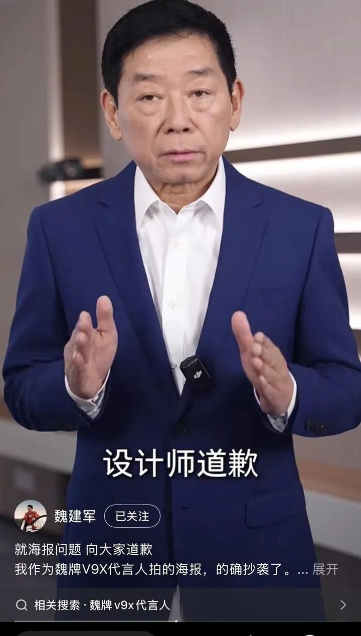 3月5日,魏牌V9X一张预热海报发布后迅速引发版权争议,在短时间内扩散至社交平台与汽车行业舆论场。6日晚,长城汽车董事长魏建军通过视频形式公开致歉,承认海报抄袭,并表示将承担相应法律与经济责任。