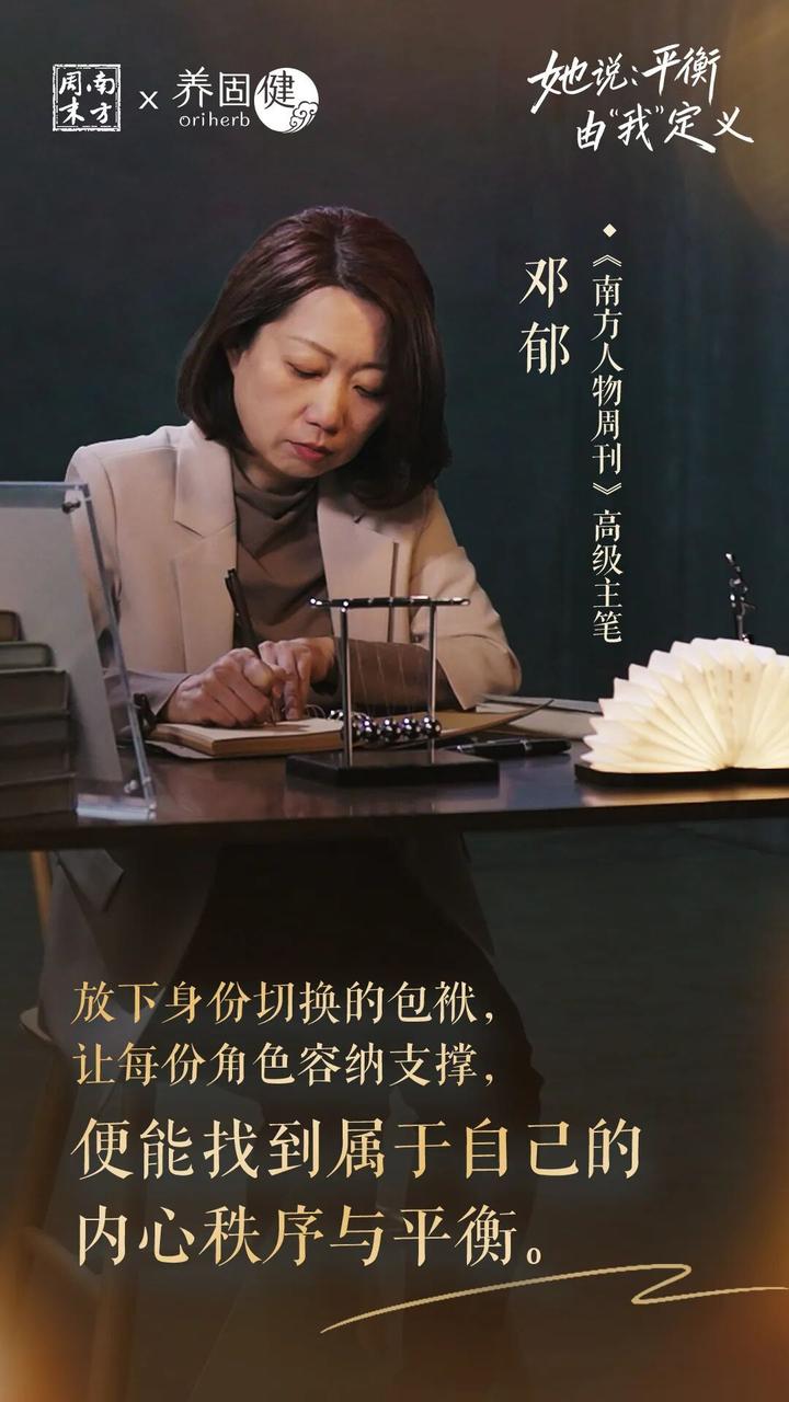 随着时间的推移,邓郁也不再执着于同时做好所有事,年轻时常常熬夜赶稿,如今“一熬夜,身体会发出各种信号”,她主动调整作息饮食,有意识地运动,也学会了根据身体状态调整工作节奏。“只有身体平衡了,整个心态才会更加平和。只要我的身体是健康的,有源源不断的题和事情可以去做。”